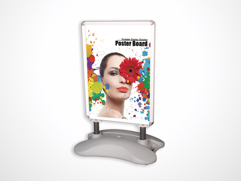 此款注水海報架共分兩部分,框架部分為鋁合金材質(zhì),水座為PE材料;戶內(nèi)和戶外均可使用;底腳注水后戶外使用可抗4-5級強風,畫面連接底部水座使用彈簧作為過渡,保證了再強風中畫面和產(chǎn)品不易損壞。