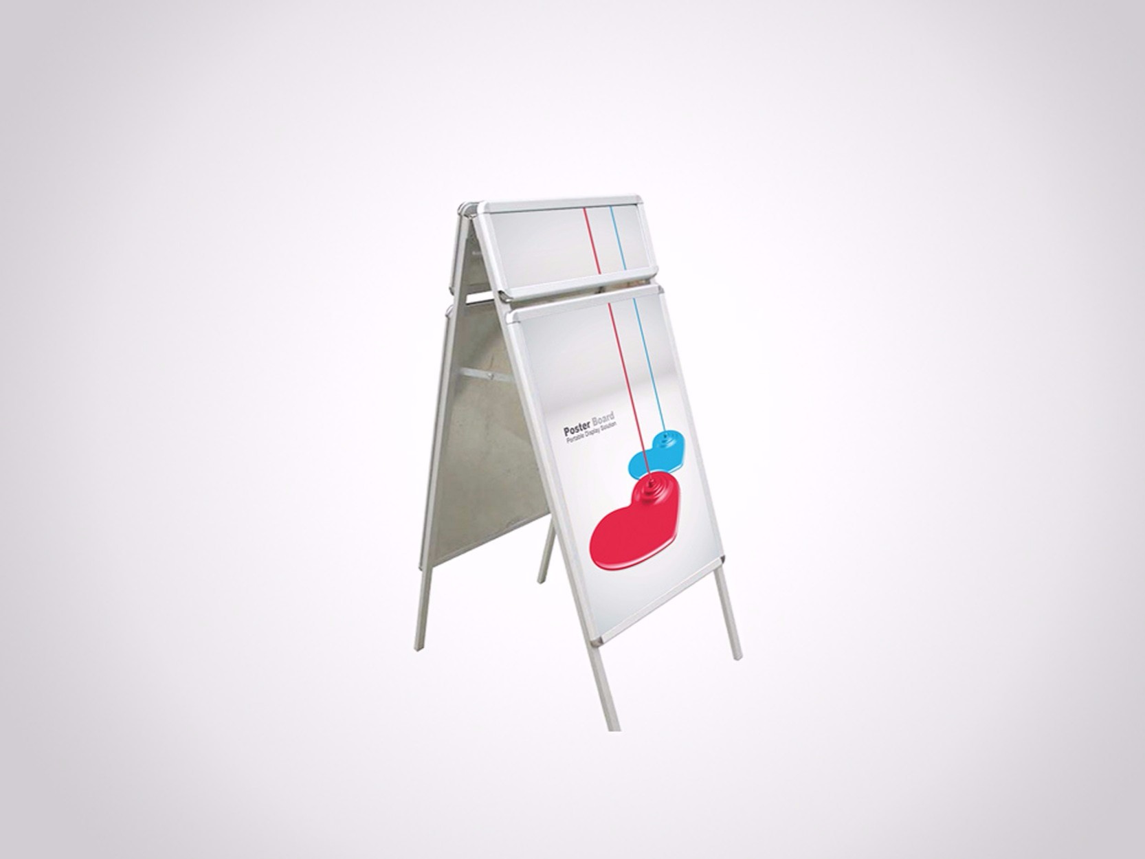 • 1、人字形戶外海報(bào)架設(shè)計(jì)非常之簡(jiǎn)單,即兩片鋁合金支撐組合;