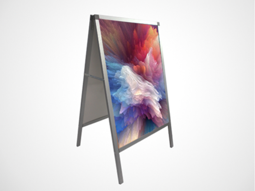 • 1、人字形戶外海報架設(shè)計非常之簡單,即兩片鋁合金支撐組合;