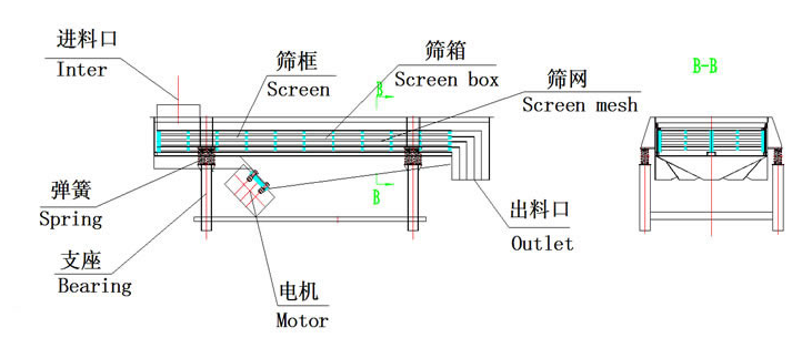 7、篩機使用塊偏心振動器激振,軸承承載能力大,使用壽命長;